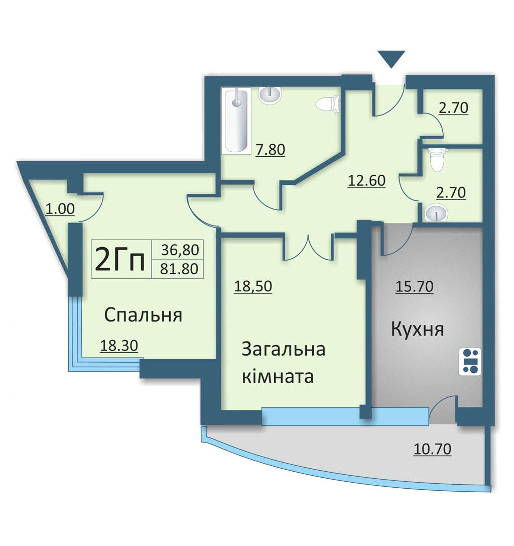 Висота житлових поверхів 2,70 м